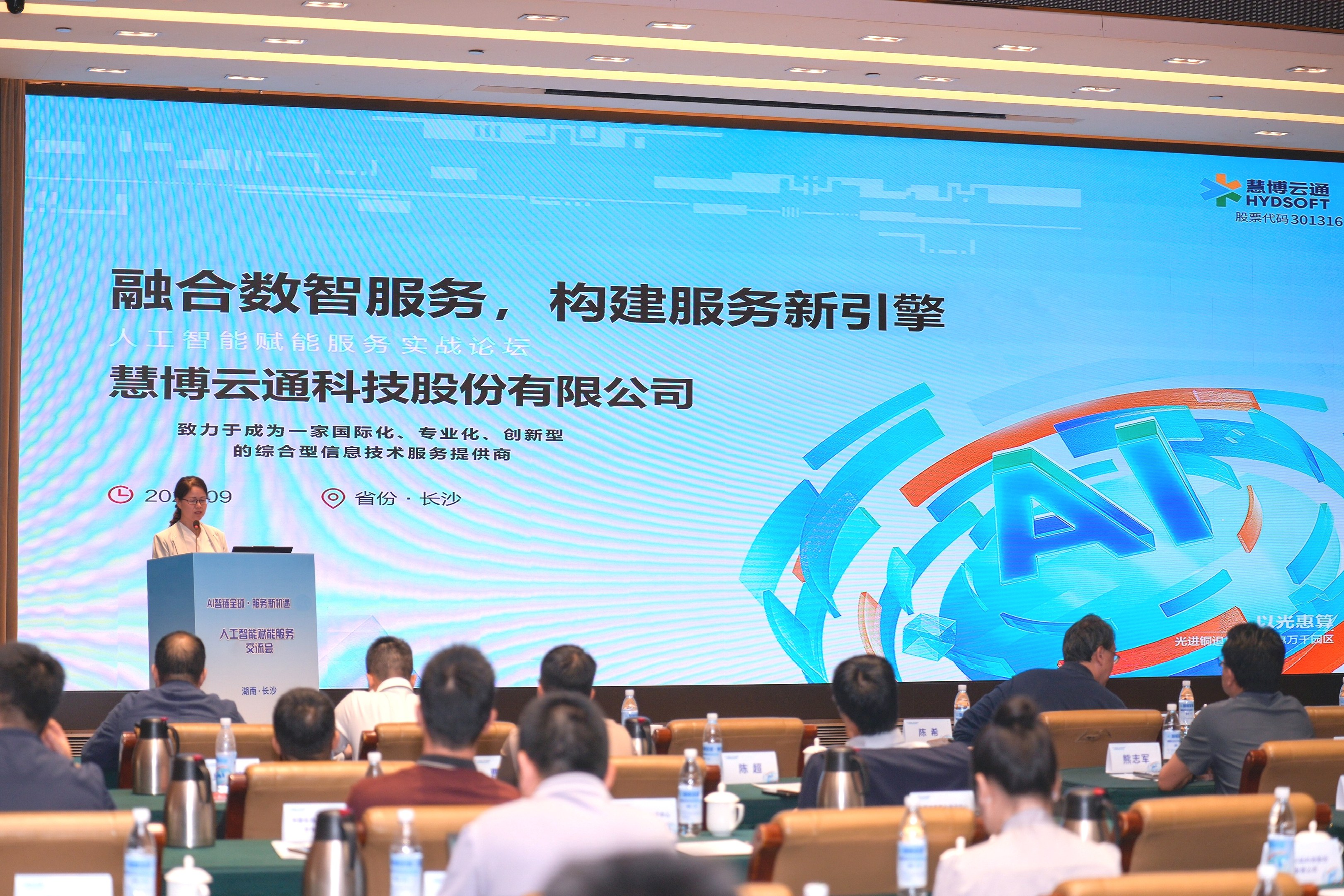 9月25日,由湖南省商务厅指导,湖南省软件外包服务协会、慧博云通科技股份有限公司等机构及企业联合主办的“AI 智链全球・服务新机遇”人工智能赋能信息技术服务交流会在湖南长沙盛大召开。