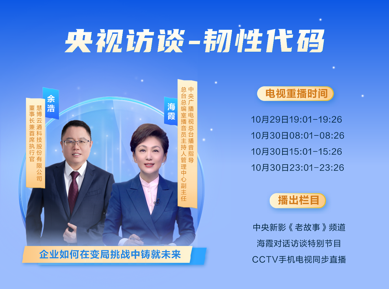 慧博云通董事长余浩受邀央视著名主持人海霞访谈,讲述企业数智技术服务创新之路